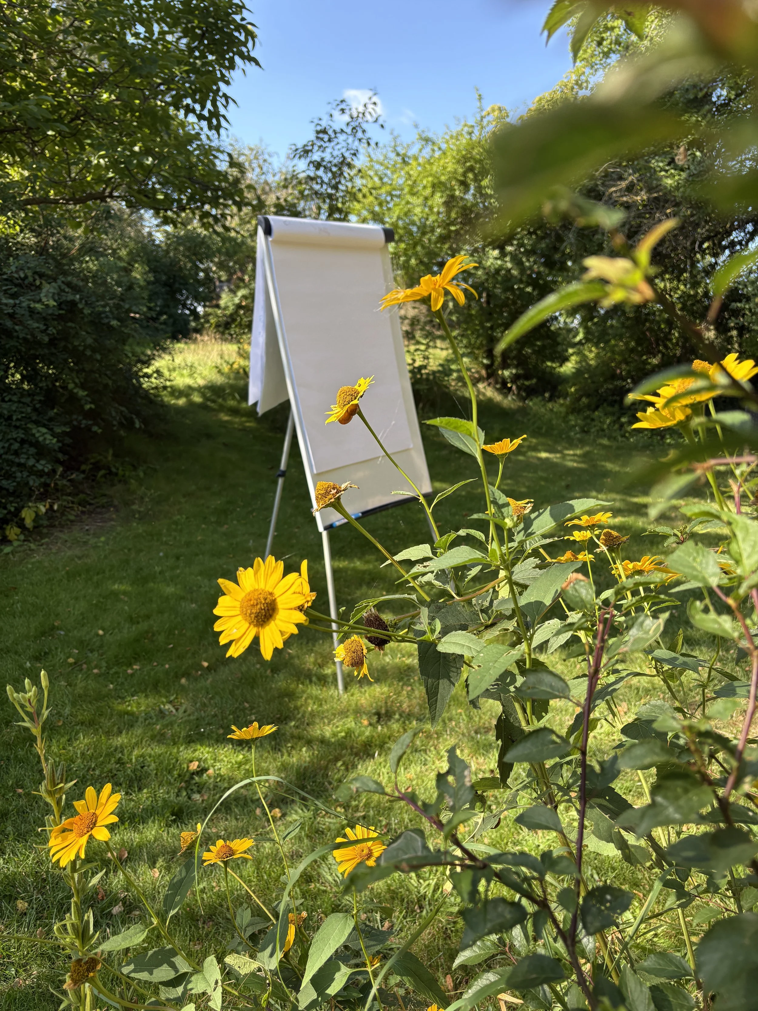 Med pauser i haven under åben himmel.